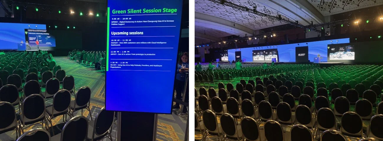 60 Content Hub Streaming Presentations - four days - one room with three screens with Quiet Event Headsets